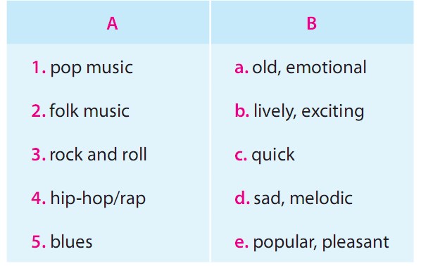- Bài tập nối từ tiếng Anh lớp 7 unit 4 Music and Arts